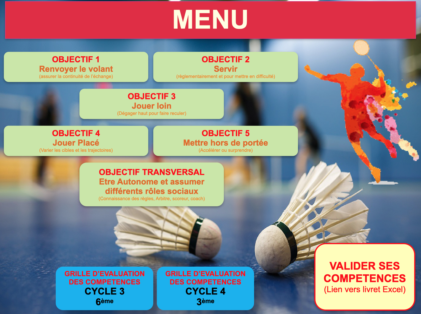Vous trouverez ci-dessous le diaporama interactif de Badminton créé par Pierre Laroche, enseignant d'EPS au collège C.Debussy à Romans sur Isère et membre du groupe NUmérique de l'Académie de GrenoblE (NUAGE).